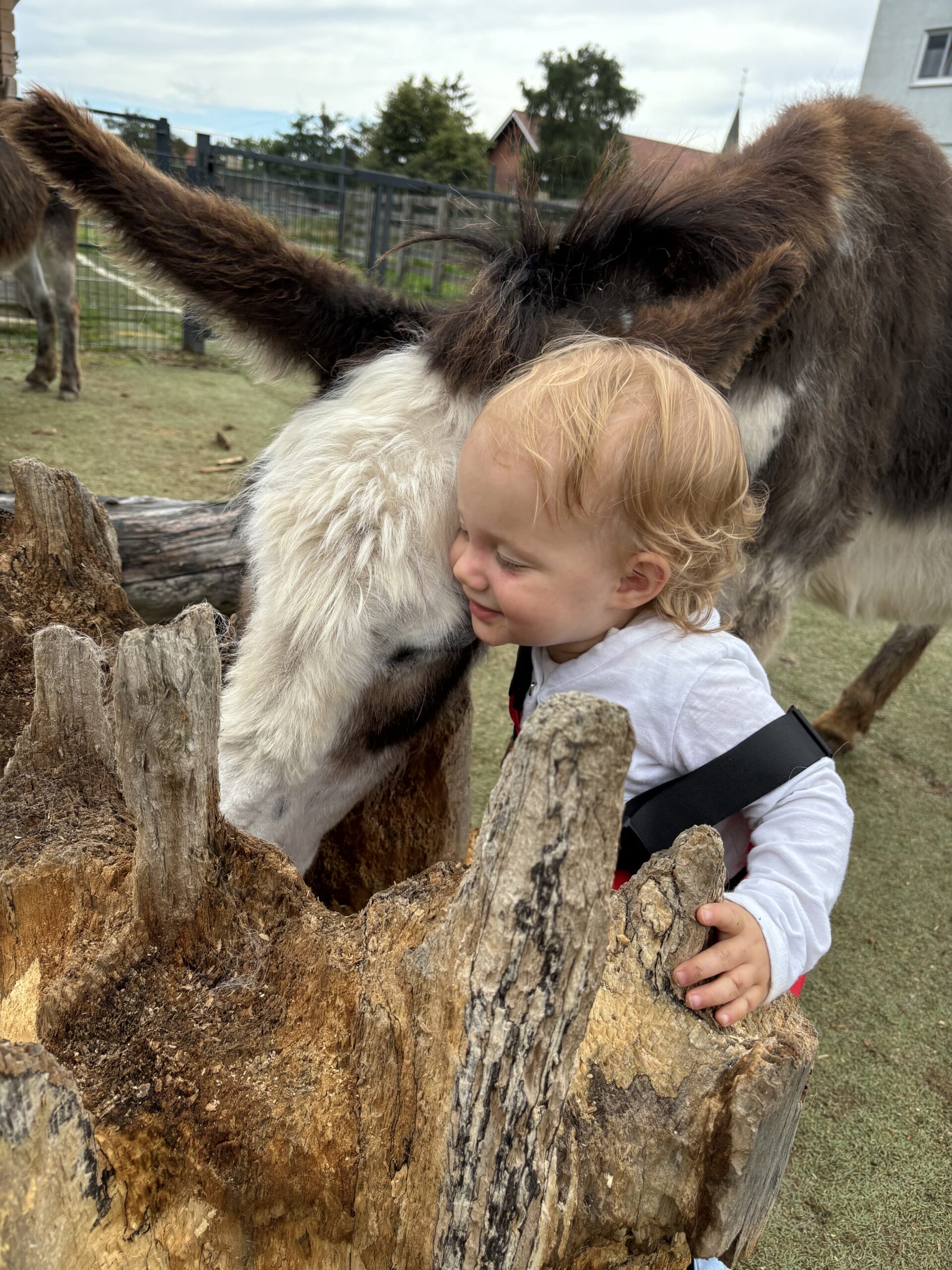 Im geschützten Gehege könnt ihr die Dynamik der Eselherde beobachten und die ruhige, ausgeglichene Art der Tiere auf euch wirken lassen. Im direkten Kontakt ist vieles möglich: streicheln, kuscheln, putzen und einfach Zeit miteinander verbringen.